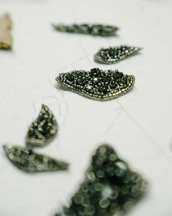 Embellishment at Safiyaa is more than decoration, it is a refined layer of craft and identity. Each embroidered detail is hand-applied by a single artisan, honouring traditional techniques while allowing room for individual expression. Whether subtly placed or boldly encrusted, these elements reflect our dedication to intentional design and bespoke artistry, where every stitch carries purpose, precision, and meaning.