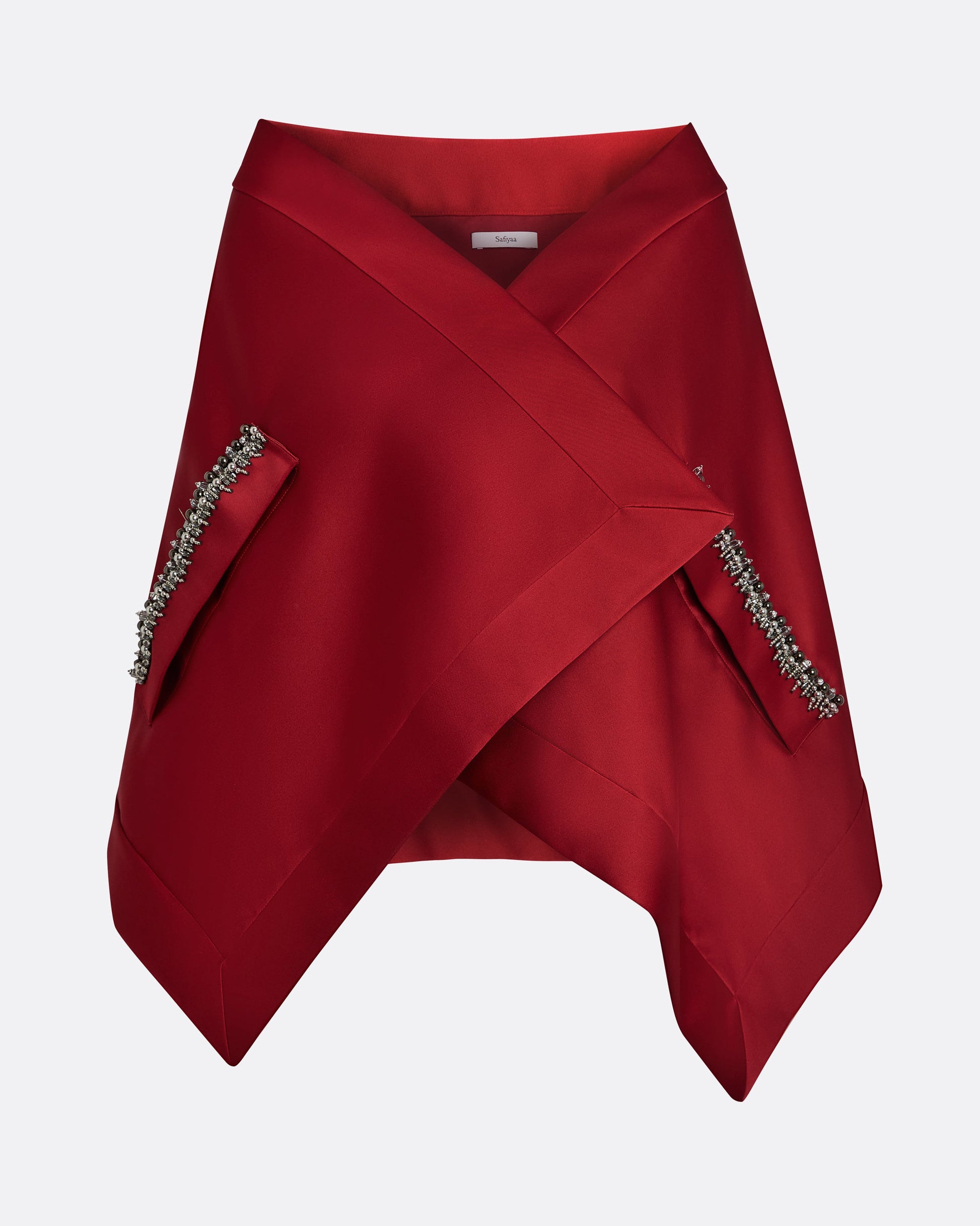 From the Autumn Winter '25 collection, the Akari harness in swinton with gunmetal introduces sculptural layering to the look. Its cocooned shape and softly draped shawl detail offer contrast and dimension to clean tailoring.
