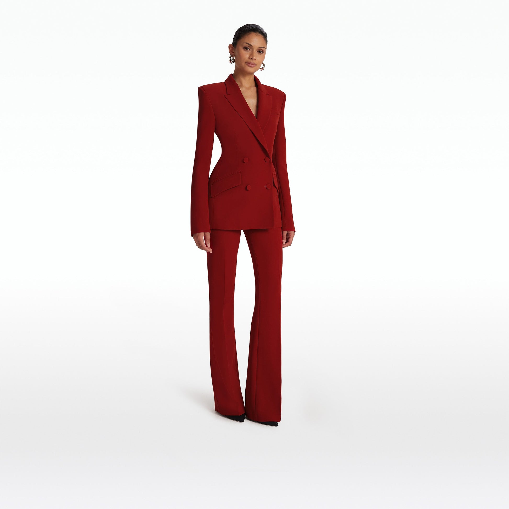 A Safiyaa Icon, the Alexa trousers in azalea red are tailored with clarity and ease. Their clean lines and subtly defined silhouette bring a composed energy to modern dressing.