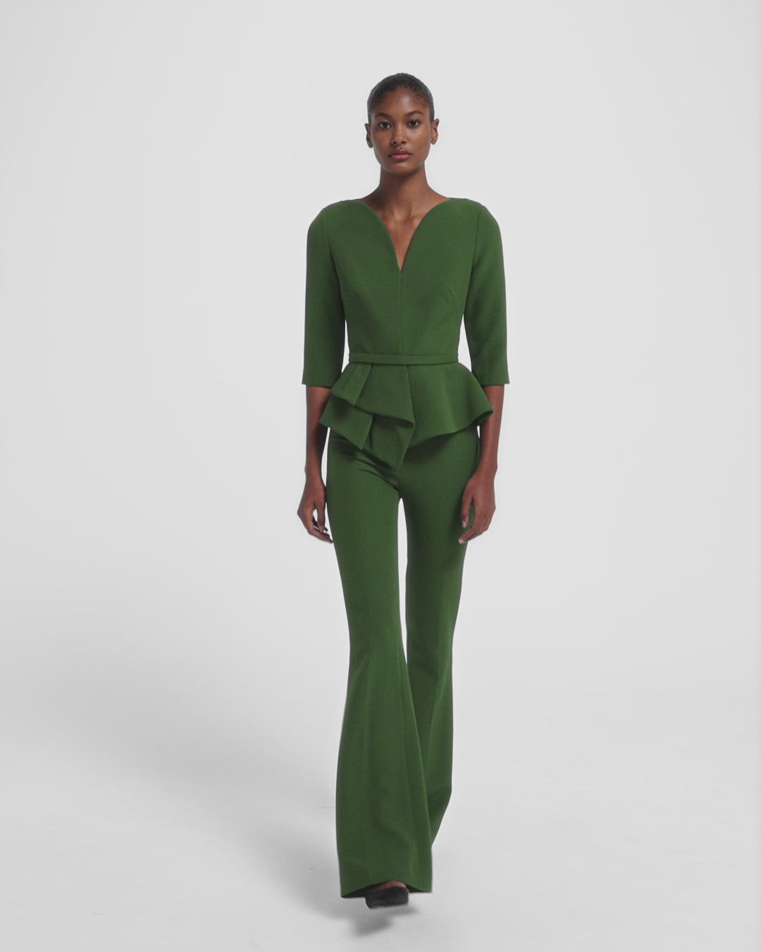 From the Resort '26 collection, the Alexa trousers in moss green present a bold, modern statement. With their expressive silhouette and distinctive flared legs, they are designed to transition seamlessly from day to evening.
