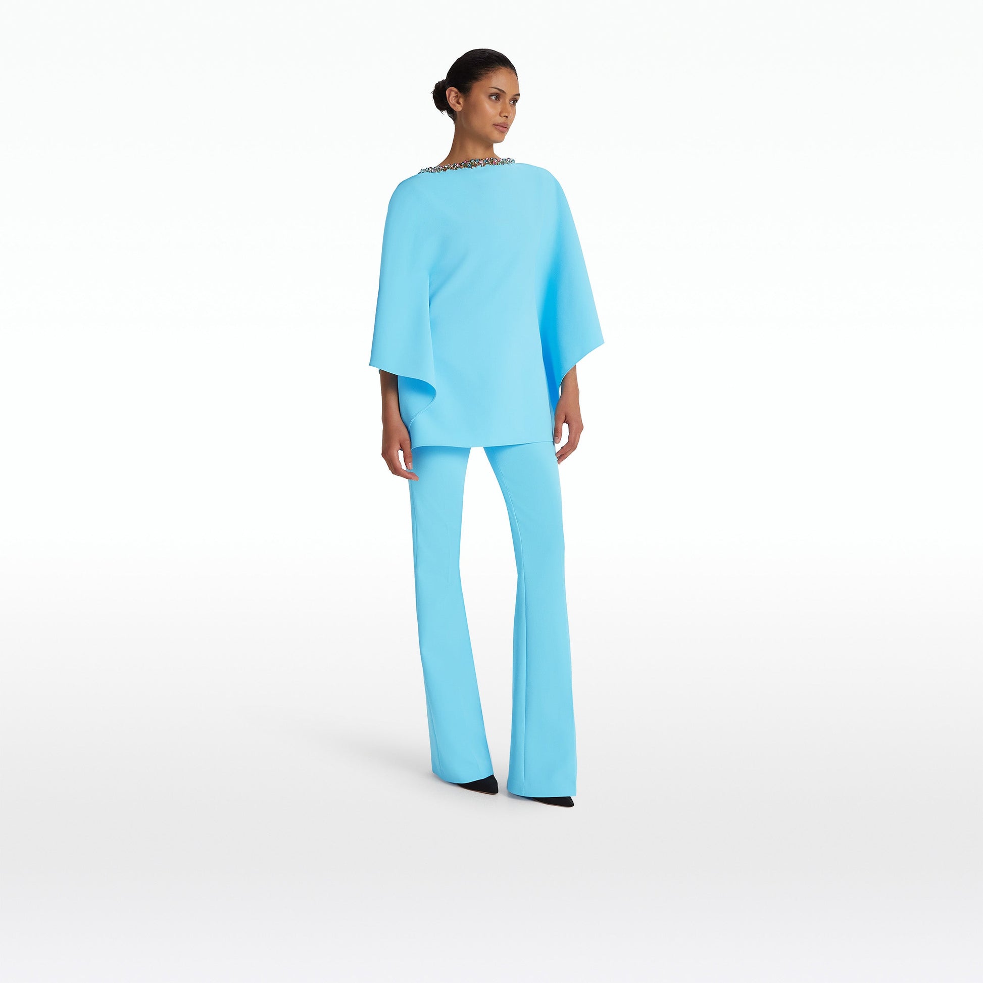 Semi-flare leg trouser in topaz Heavy Crepe.
