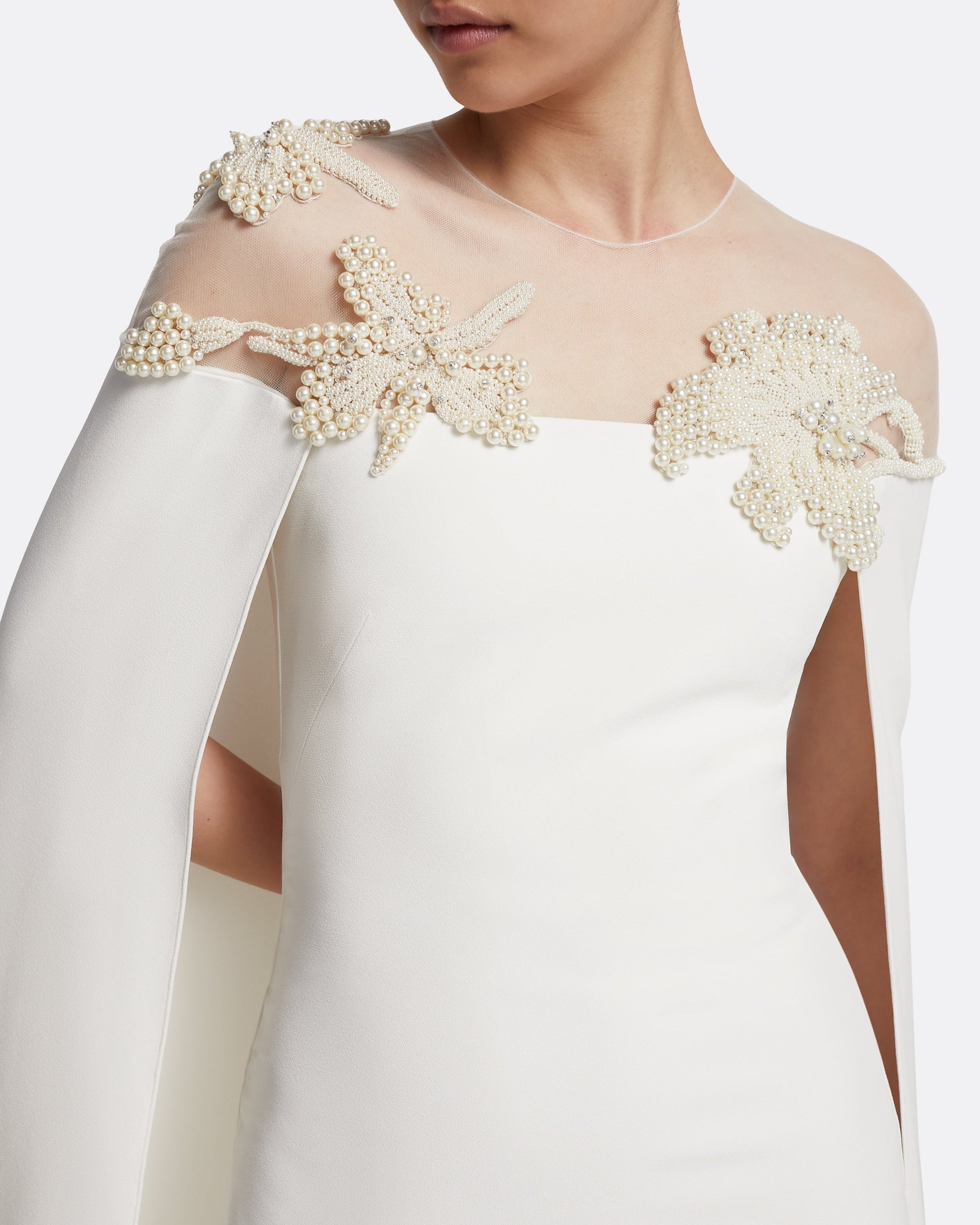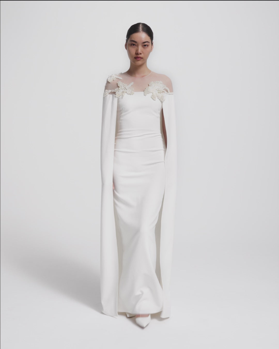 • Floor-length cape