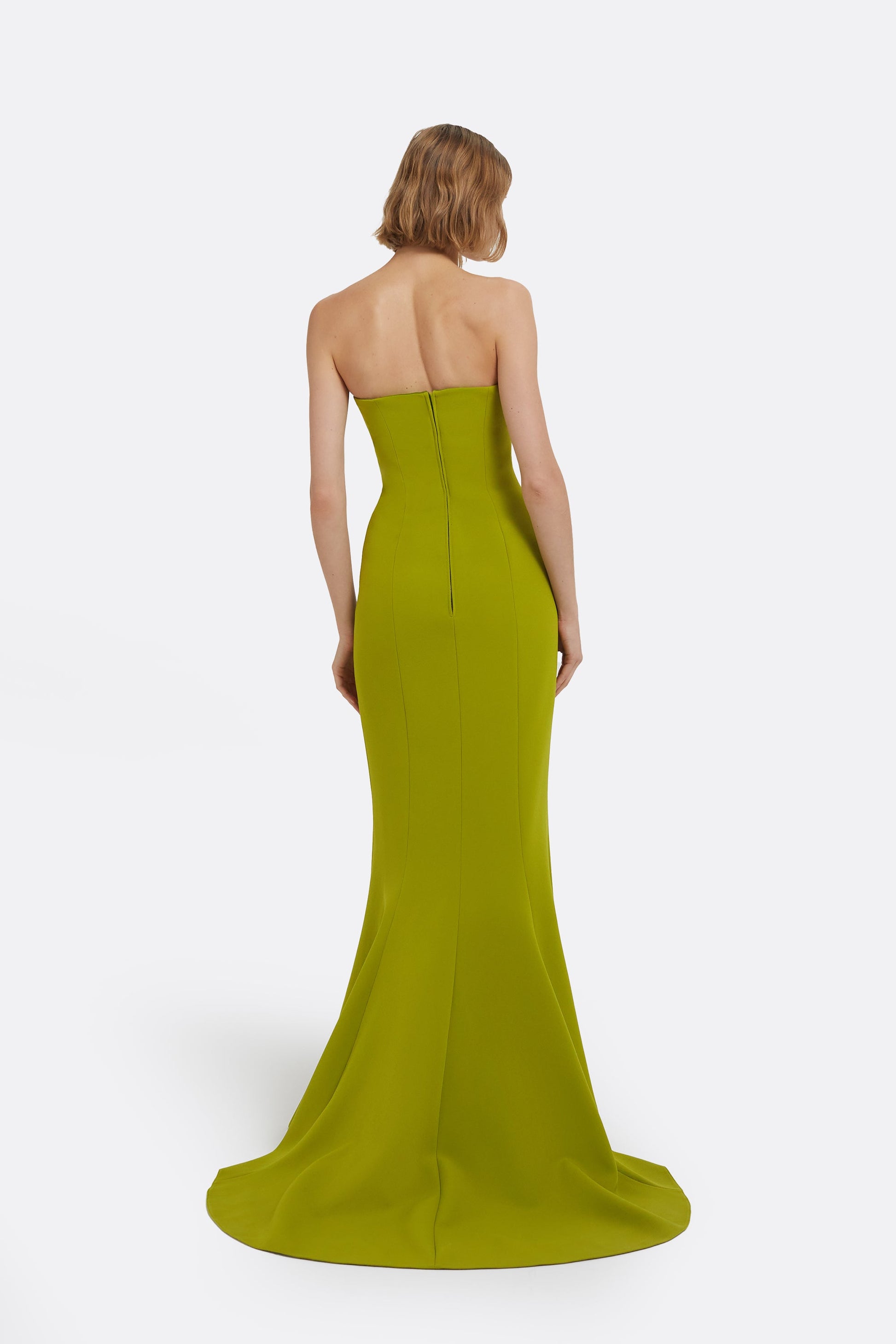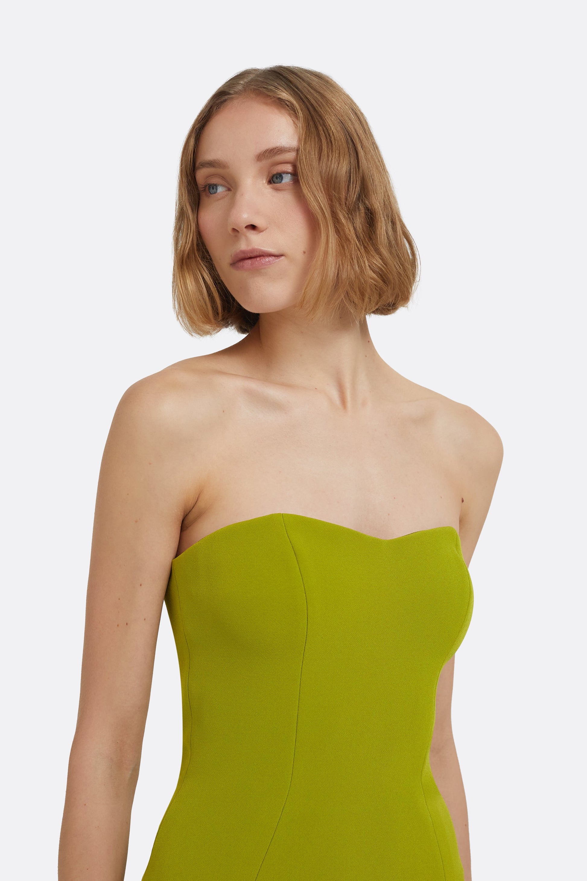 From the Pre-Fall ’25 collection, the Angelina dress in woodbine is a statement of sculpted elegance. Designed with a sleek, form-enhancing silhouette, it exudes timeless sophistication—perfect for a commanding yet refined presence.