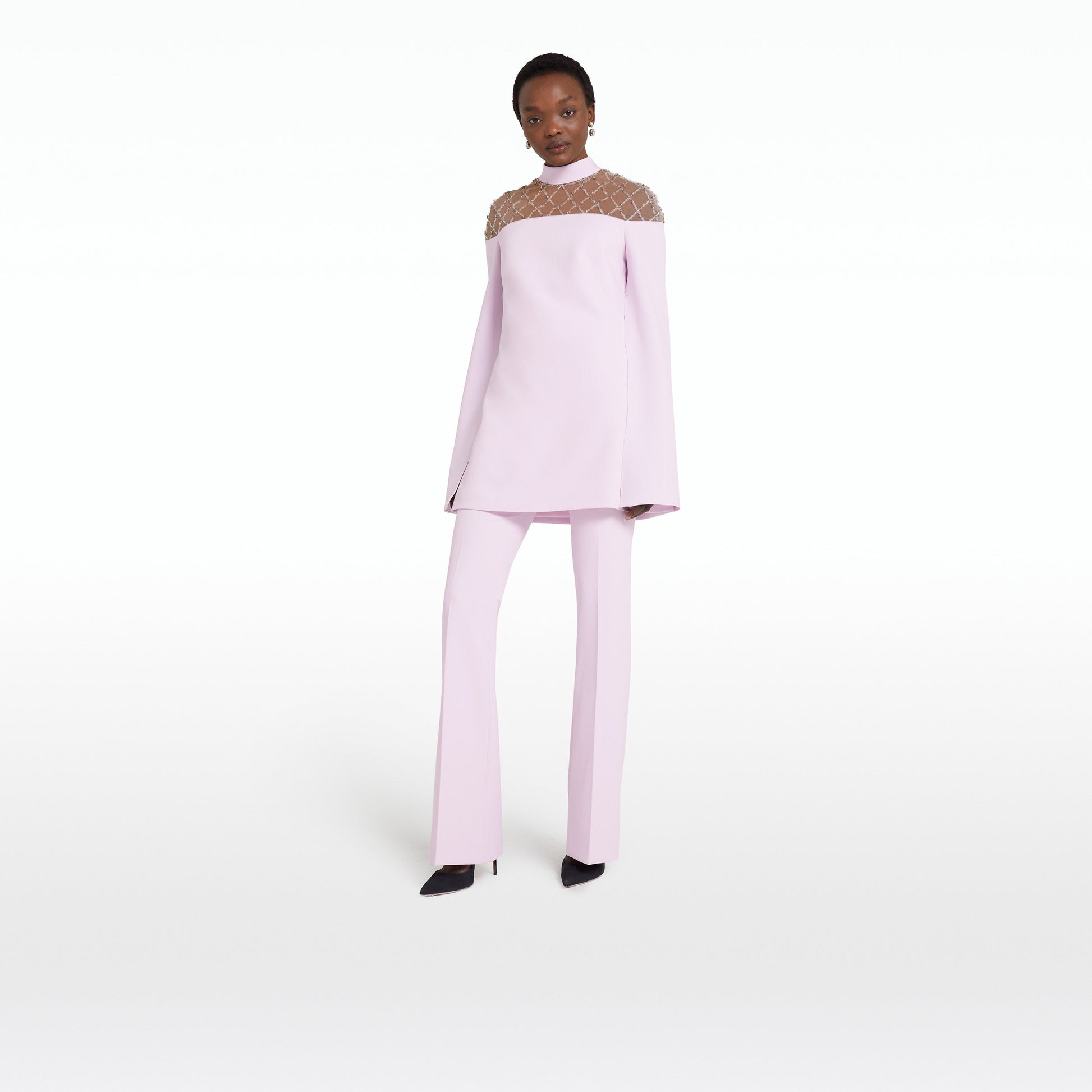 Styled with the Alexa trousers in lilac snow. Fits true to size. Model is 175cm | 5'9'' and wearing a FR36 Heavy Crepe:92 % Polyester , 8 % Elastane
