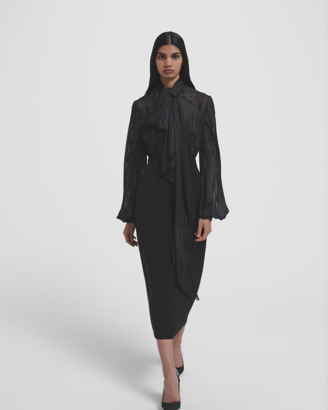 From the Resort ’26 collection, the Finian skirt in black offers understated structure with its clean silhouette. Designed to sit at the natural waist, it brings quiet definition to any look, from sharp tailoring to softly textured separates.