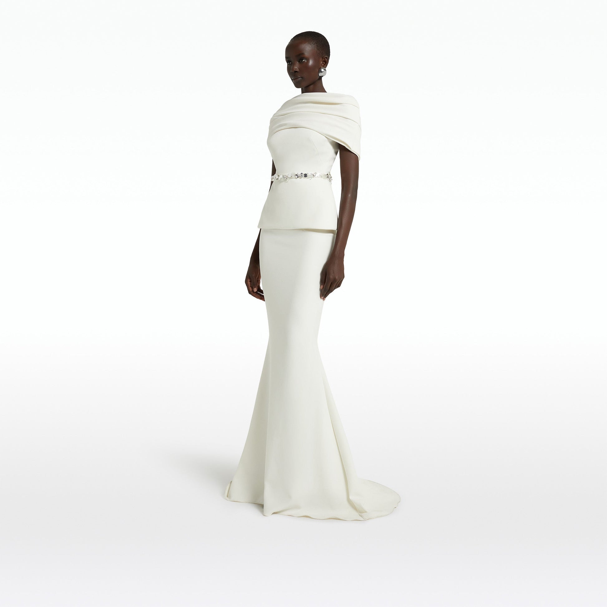 Shown with the Loura top in Ivory. Fits true to size . Model is 175cm | 5'9'' and wearing a FR36 Heavy Crepe: 92%Polyester, 8% Elastane Garment care labels subject to UK Regulations under the Textile Products (Labelling and Fibre Composition) - 2012.