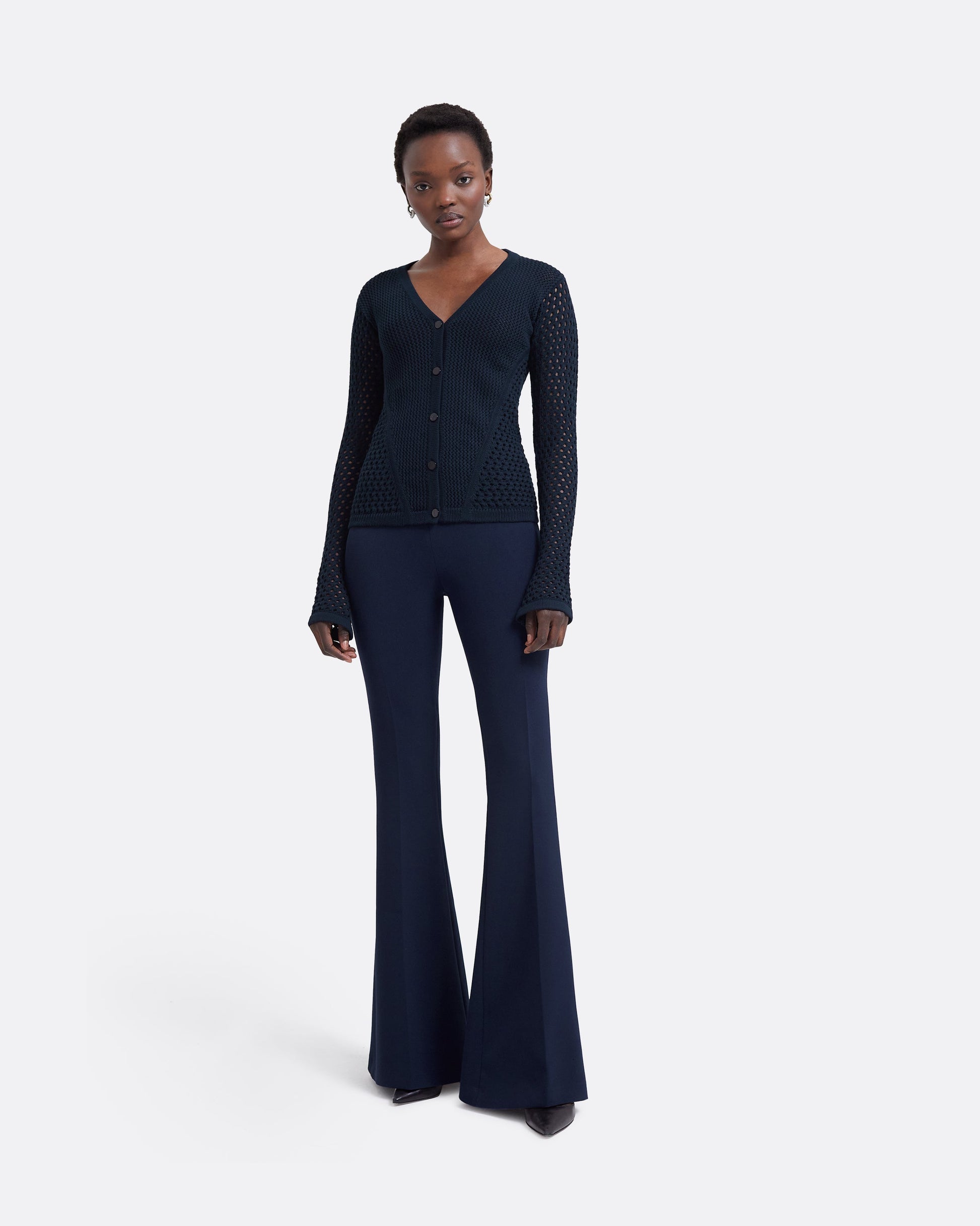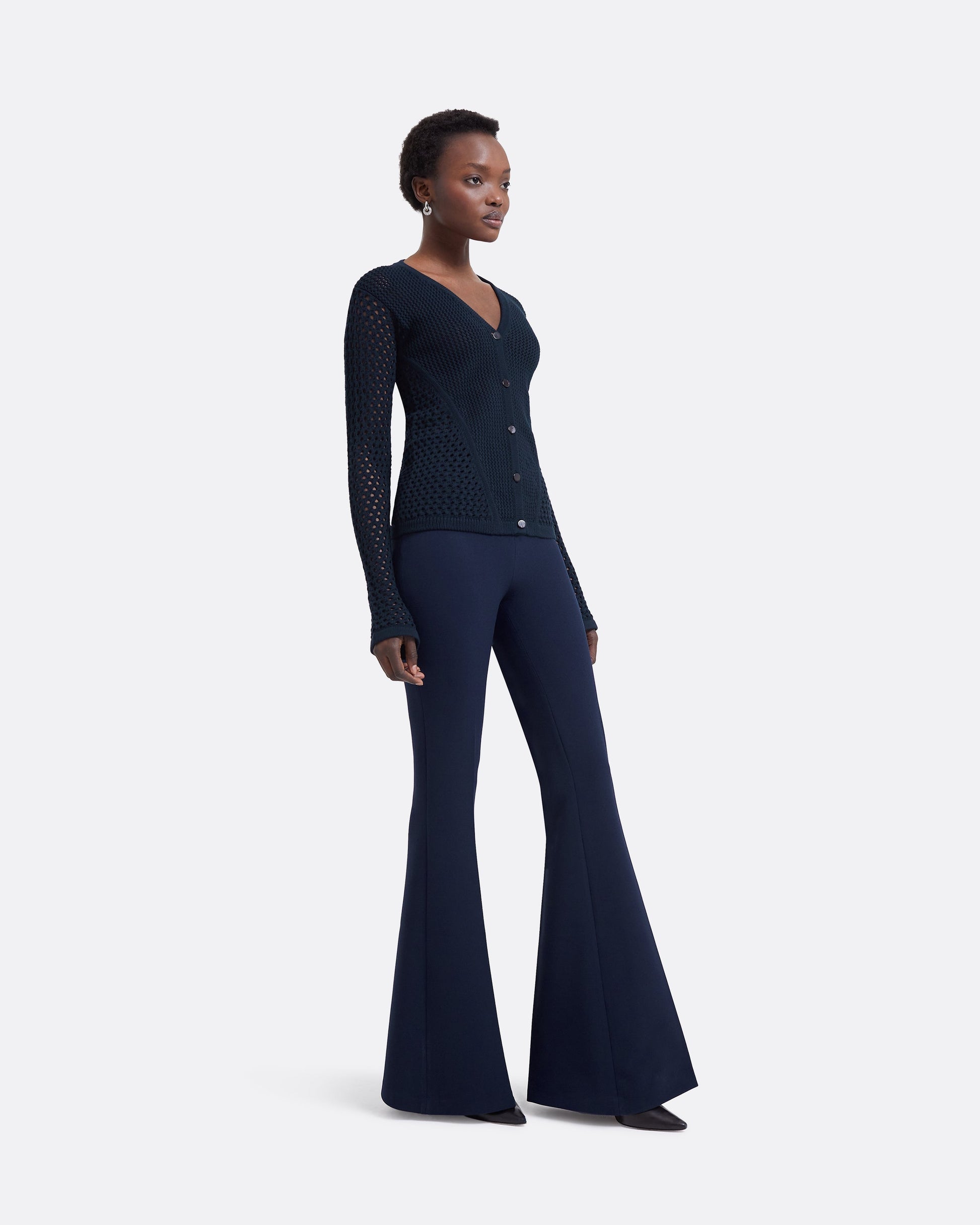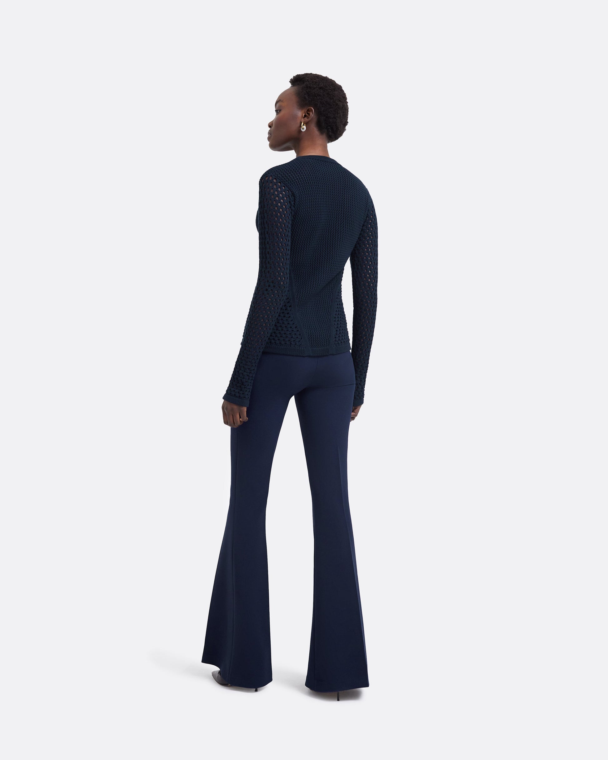 Styled with the Keziah knit in navy. Fits true to size. Model is 175cm | 5'9'' and wearing a FR36 Heavy Crepe:92 % Polyester , 8 % Elastane