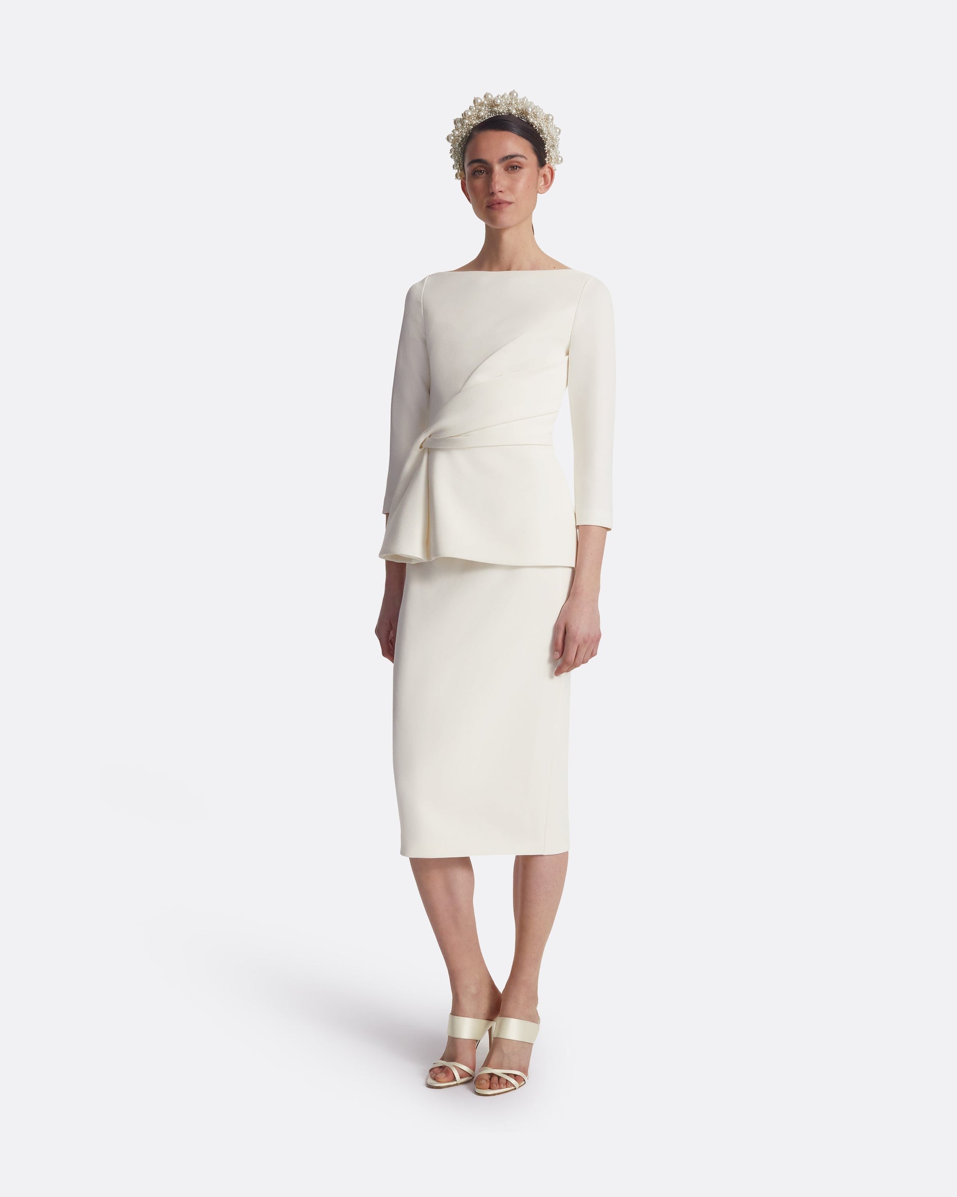 Styled with the Paisley top in ivory. Fits true to size. Model is 175cm | 5'9'' and wearing a FR36 Heavy Crepe: 92% Polyester, 8% Elastane Garment care labels subject to UK Regulations under the Textile Products (Labelling and Fibre Composition) - 2012.