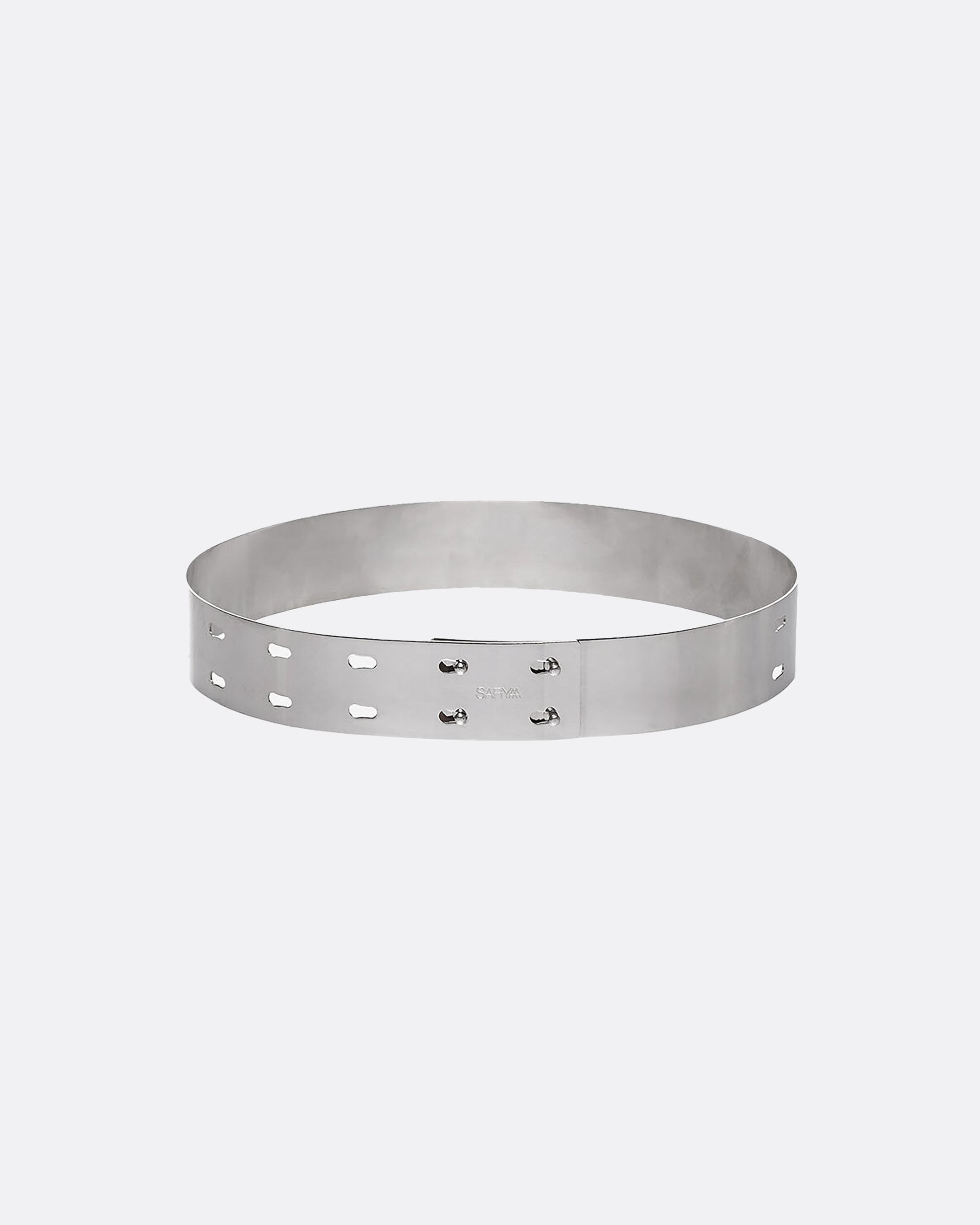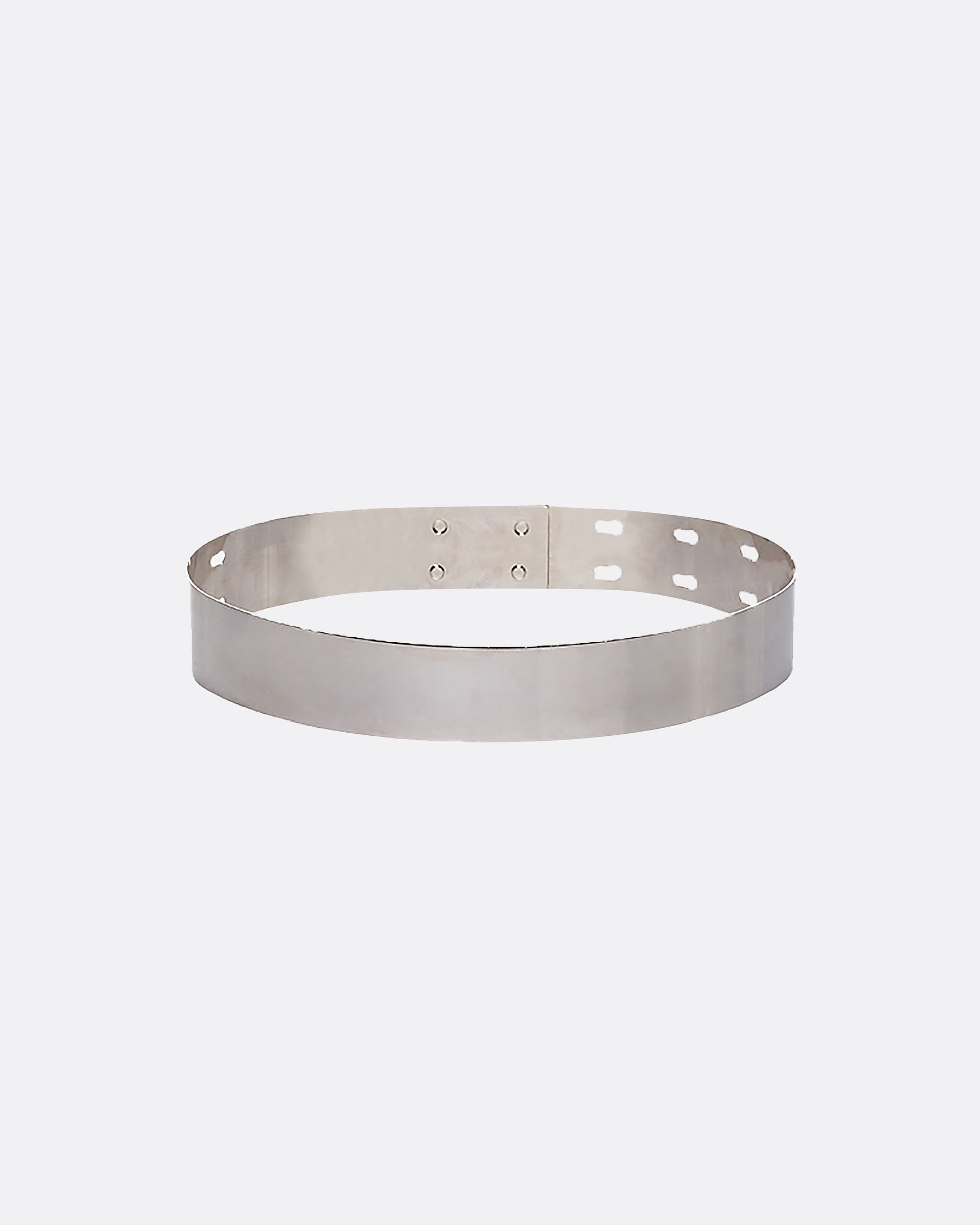 Adjustable metal belt with a high-shine finish.
