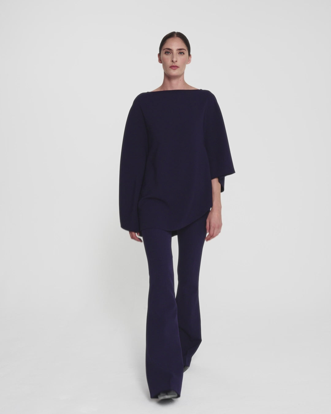 Styled with the Alexa trousers in azurite. Fits true to size. Model is 175cm | 5'9" and wearing a FR36 Heavy Crepe: 92% Polyester, 8% Elastane.