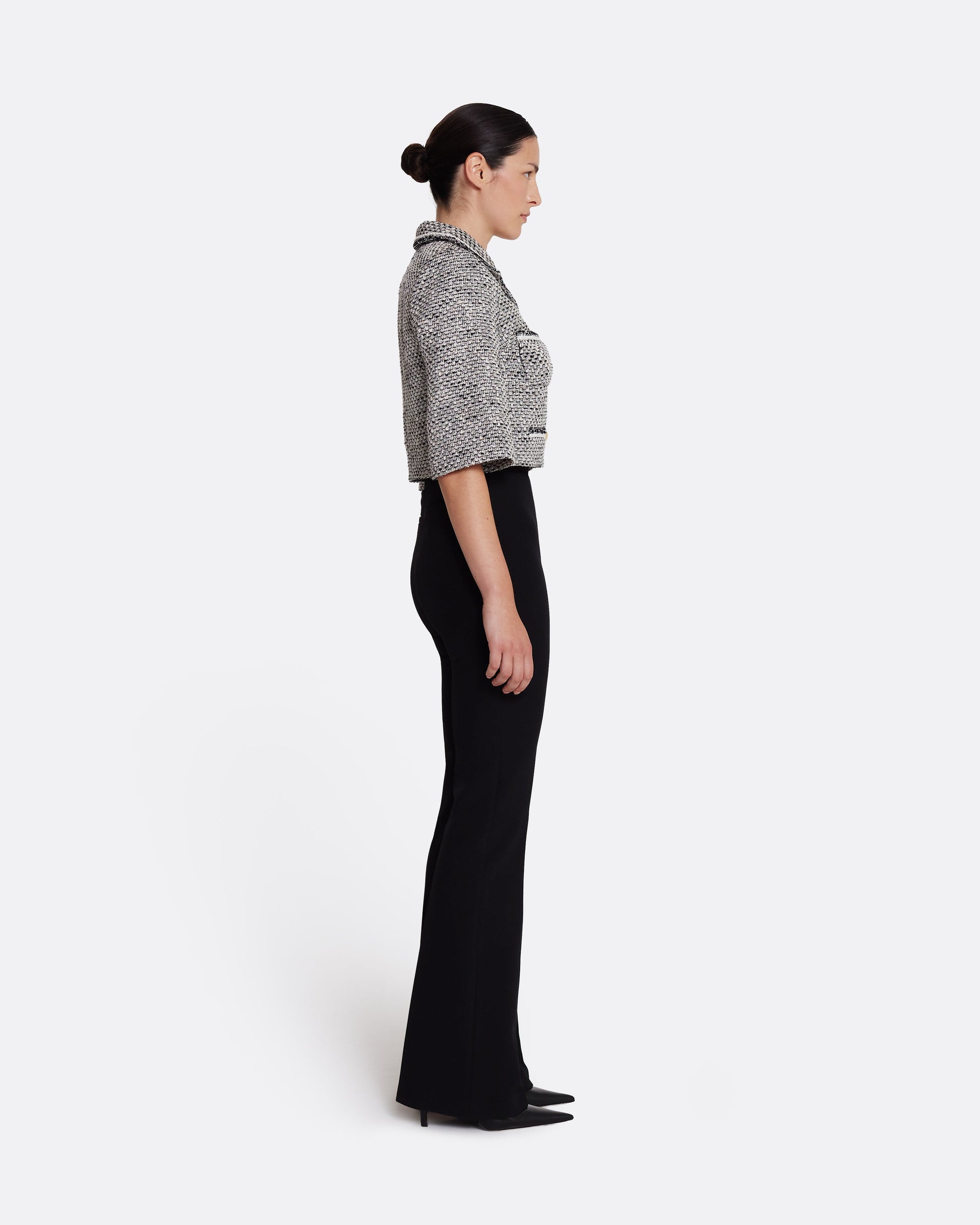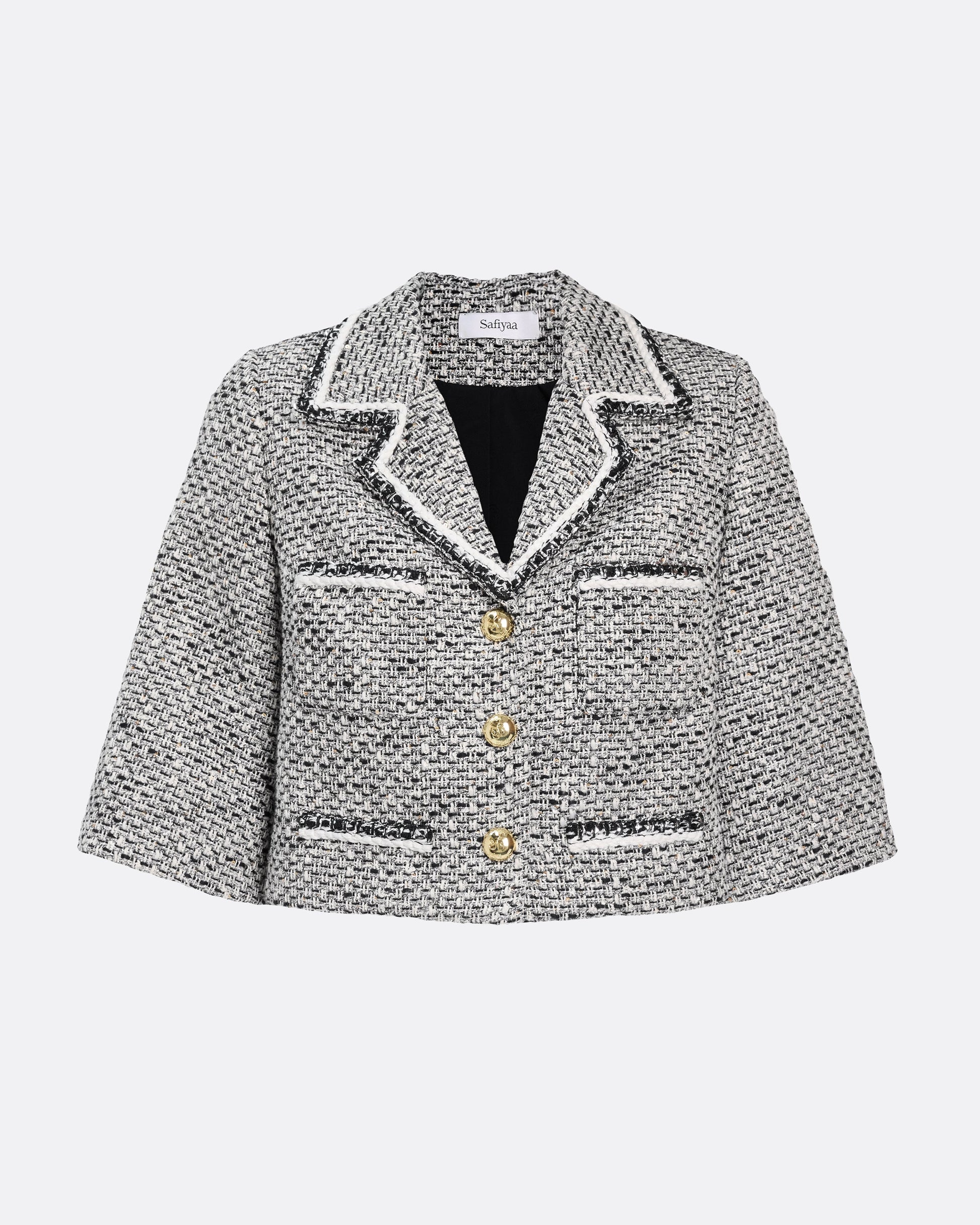 From the Spring Summer ’26 collection, the Marzia Jacket in greyscale brings a sharp, graphic note to classic tailoring. Cropped proportions and a defined outline give the piece a modern, self-assured character.