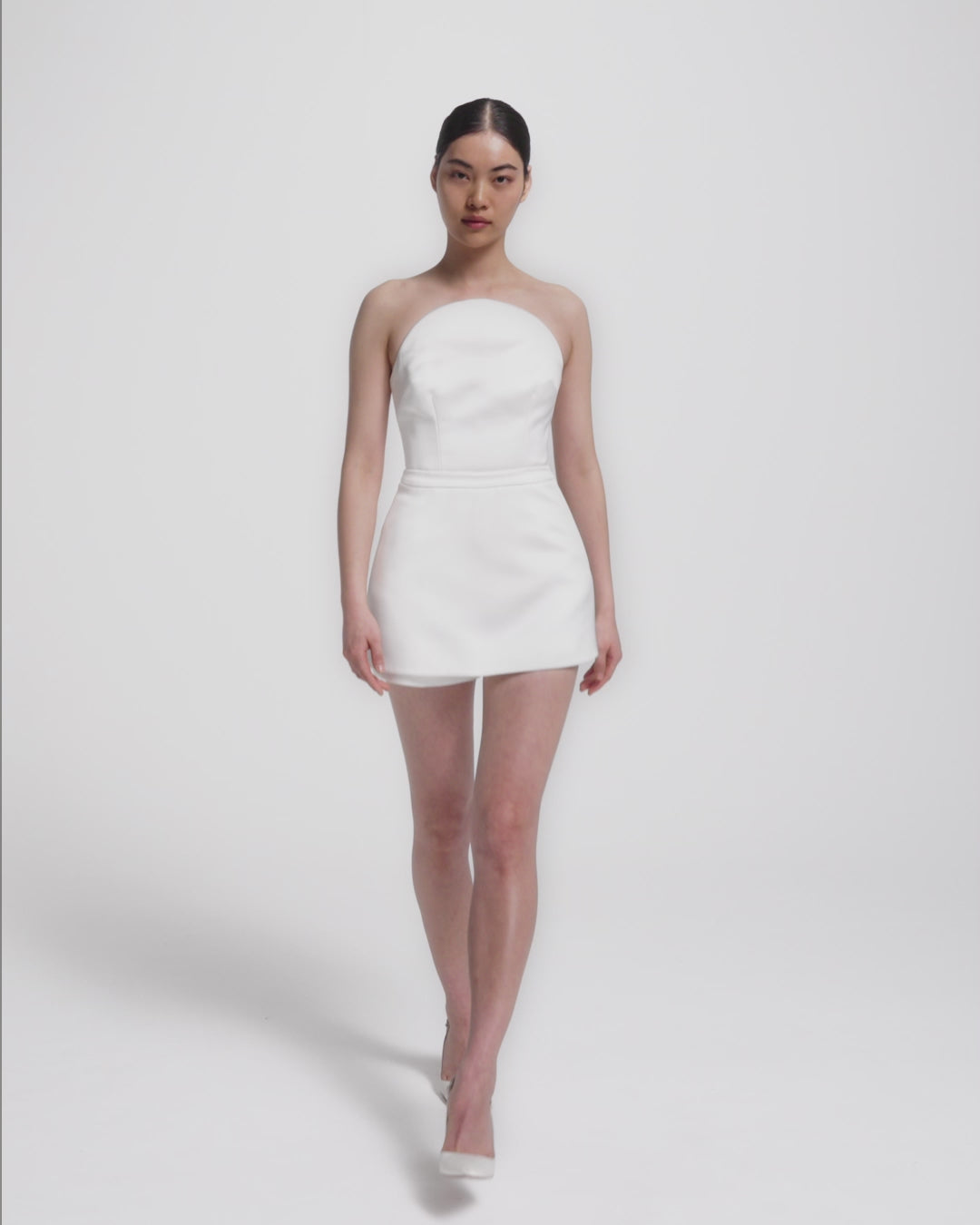 From the Bridal ’26 collection, the Matilda skort in porcelain refines everyday structure with a contemporary twist. A classic mini design reimagined as a skort, it offers ease and attitude in equal measure.