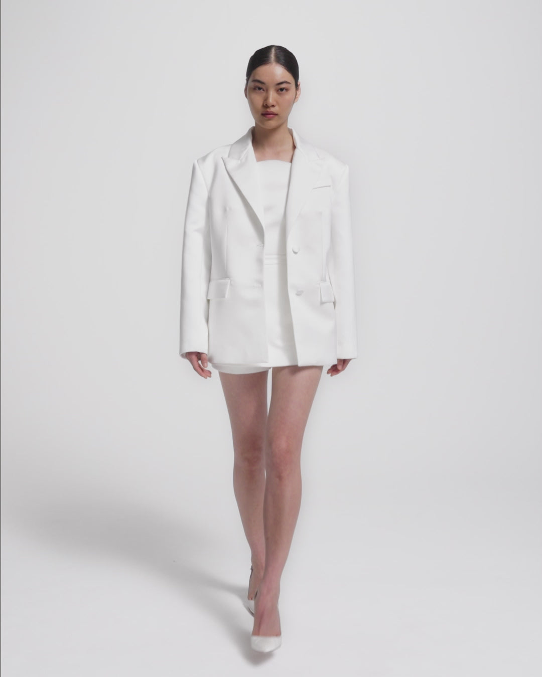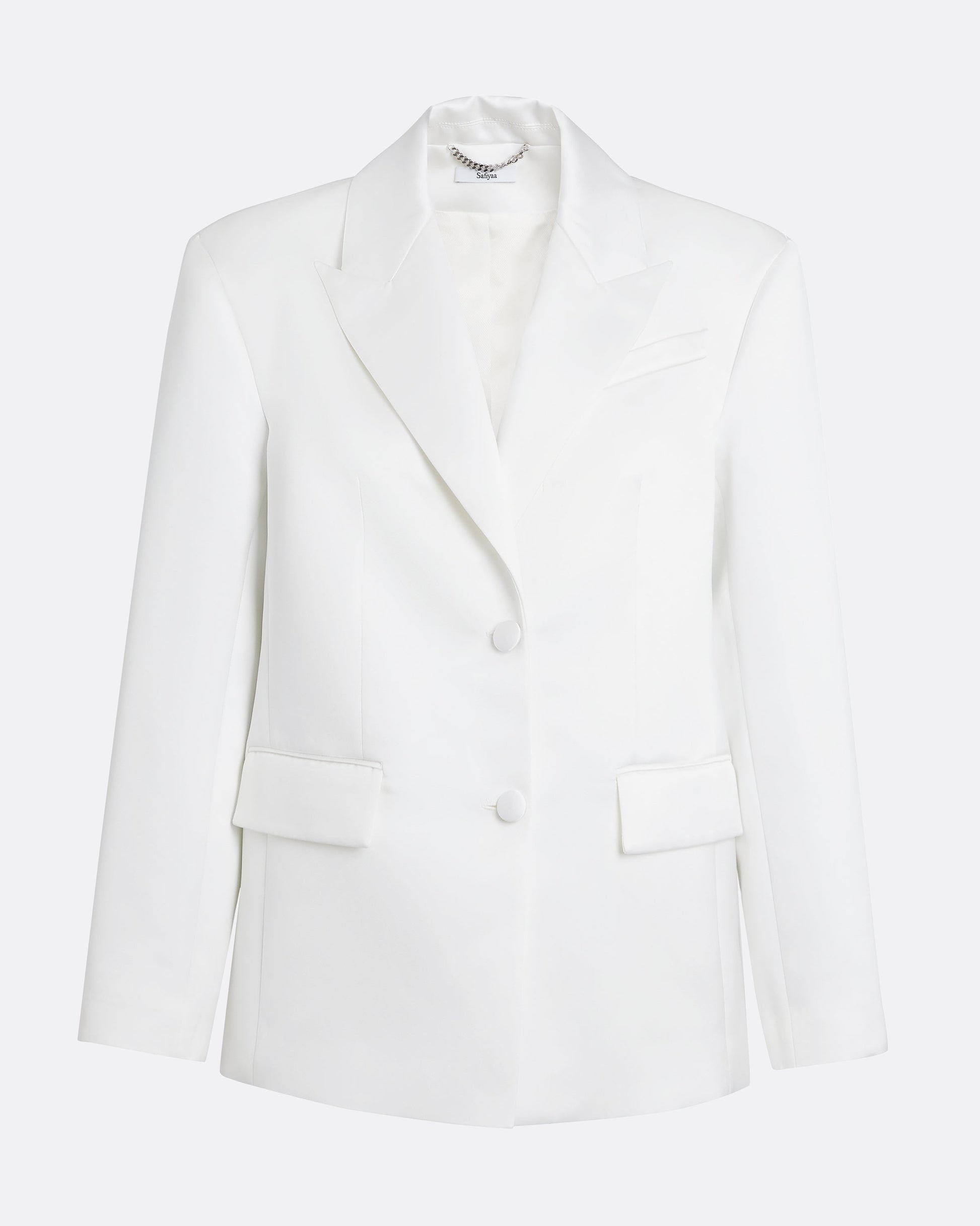 From the Bridal ’26 collection, the Maurissa jacket in porcelain refines traditional tailoring through a softened cut and subtle details. A timeless blazer, reimagined for modern understatement.