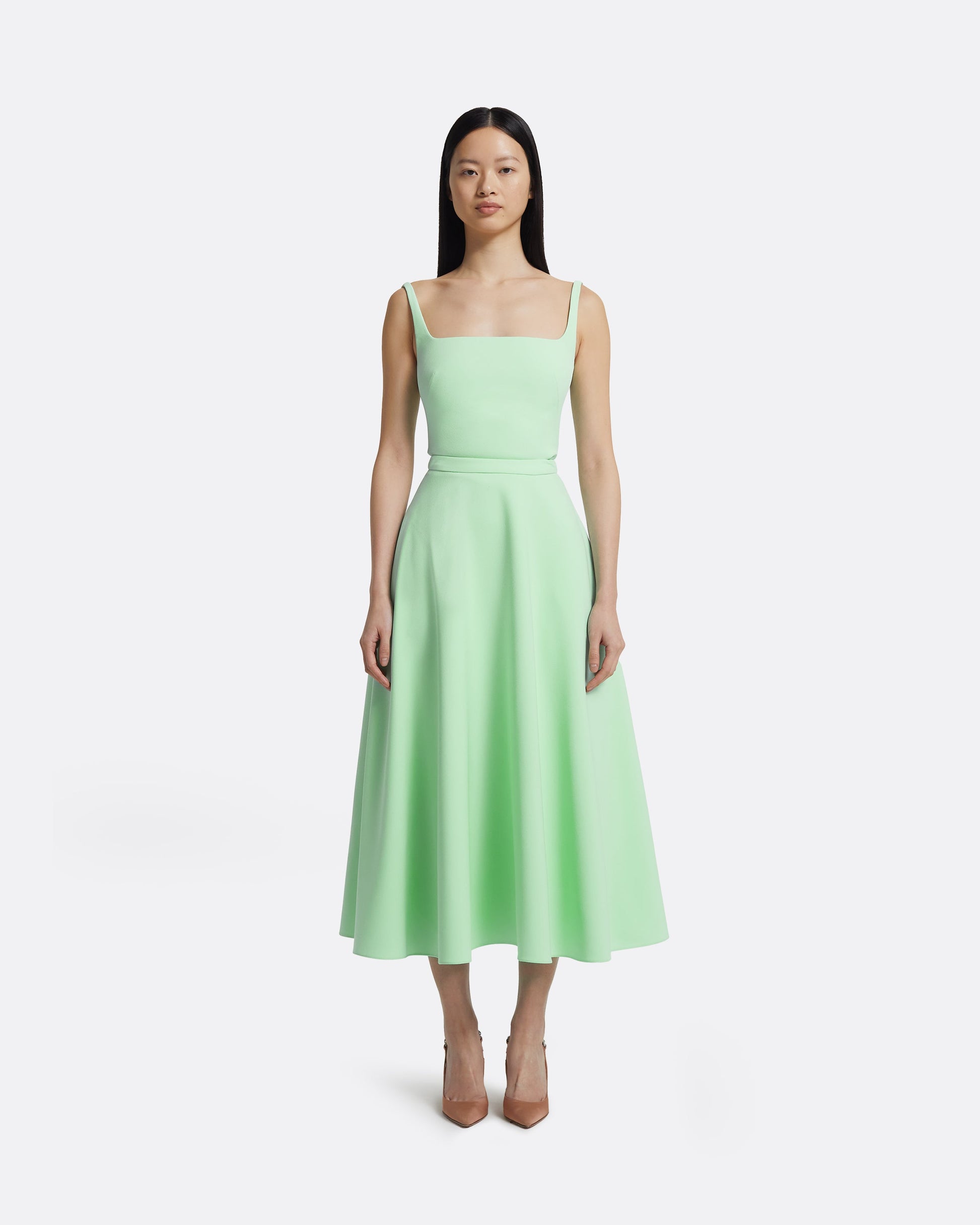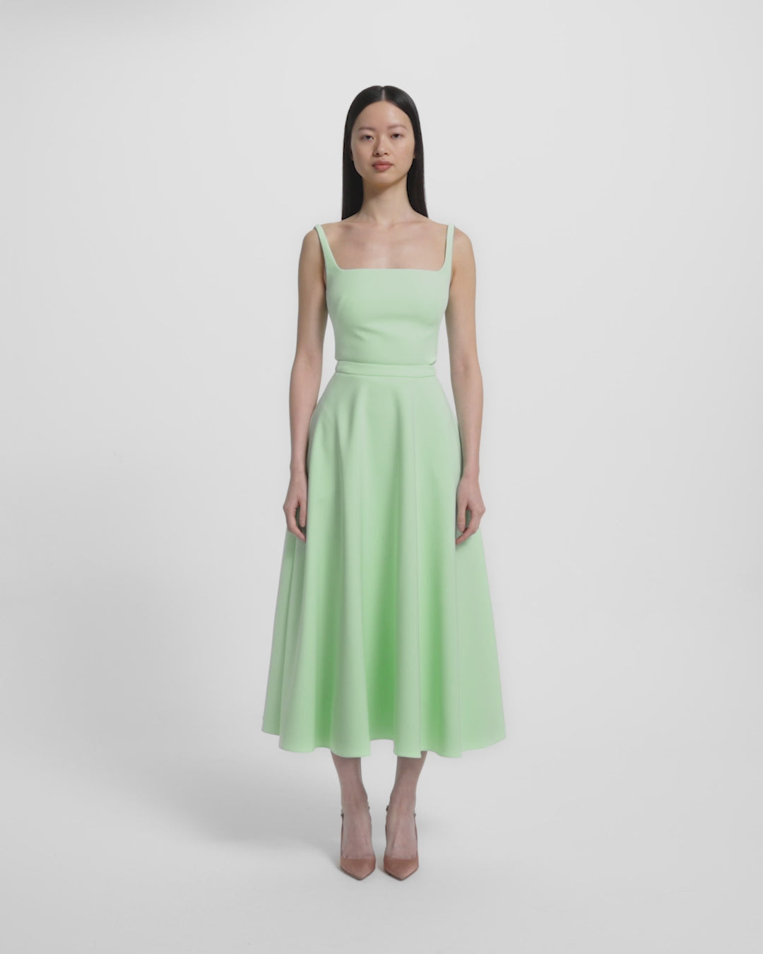From the Autumn Winter '25 collection, the Miwa skirt in brook green balances movement with precision. Its clean construction and generous volume offer a sense of ease with a sculpted edge.