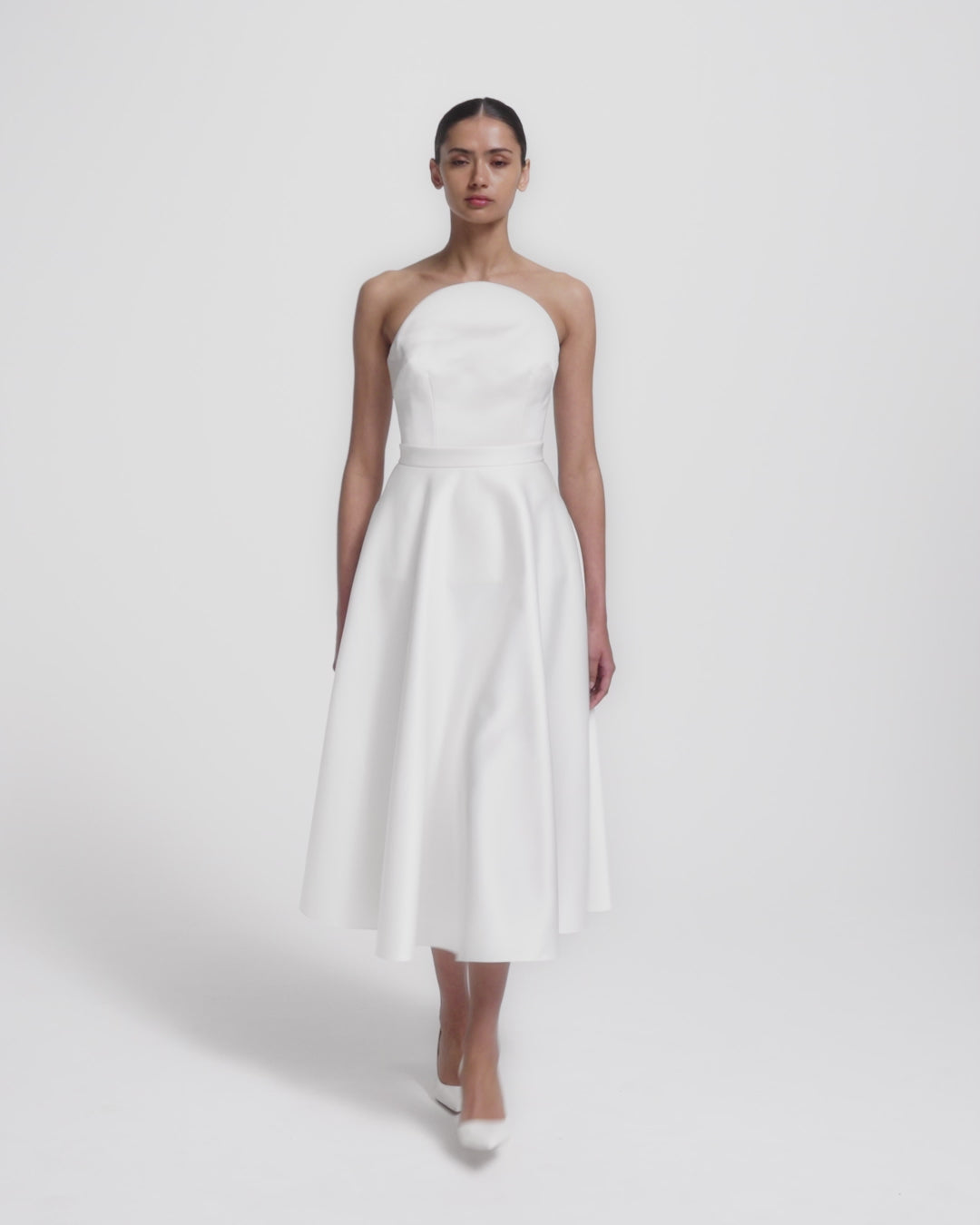 From the Bridal ’26 collection, the Miwa skirt in porcelain balances movement with precision. Its clean construction and generous volume offer a sense of ease with a sculpted edge.