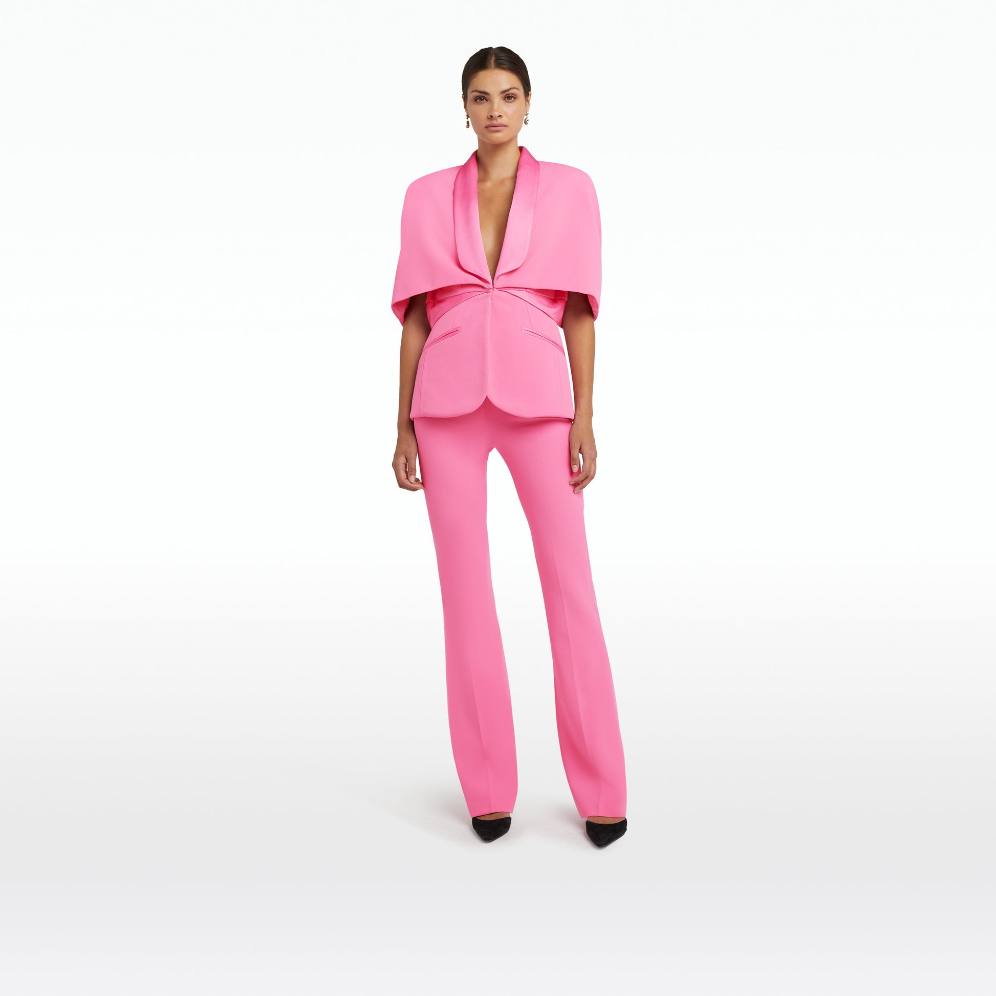 Cocoon sleeve, tailored jacket with tuxedo details in aurora Heavy Crepe and Satin Back Crepe.
