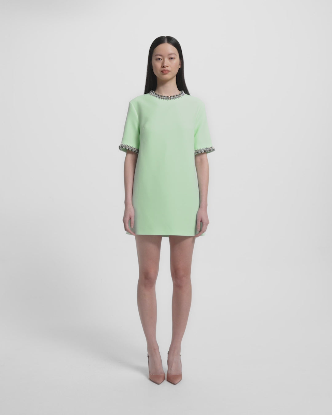 • Short sleeve mini shift dress