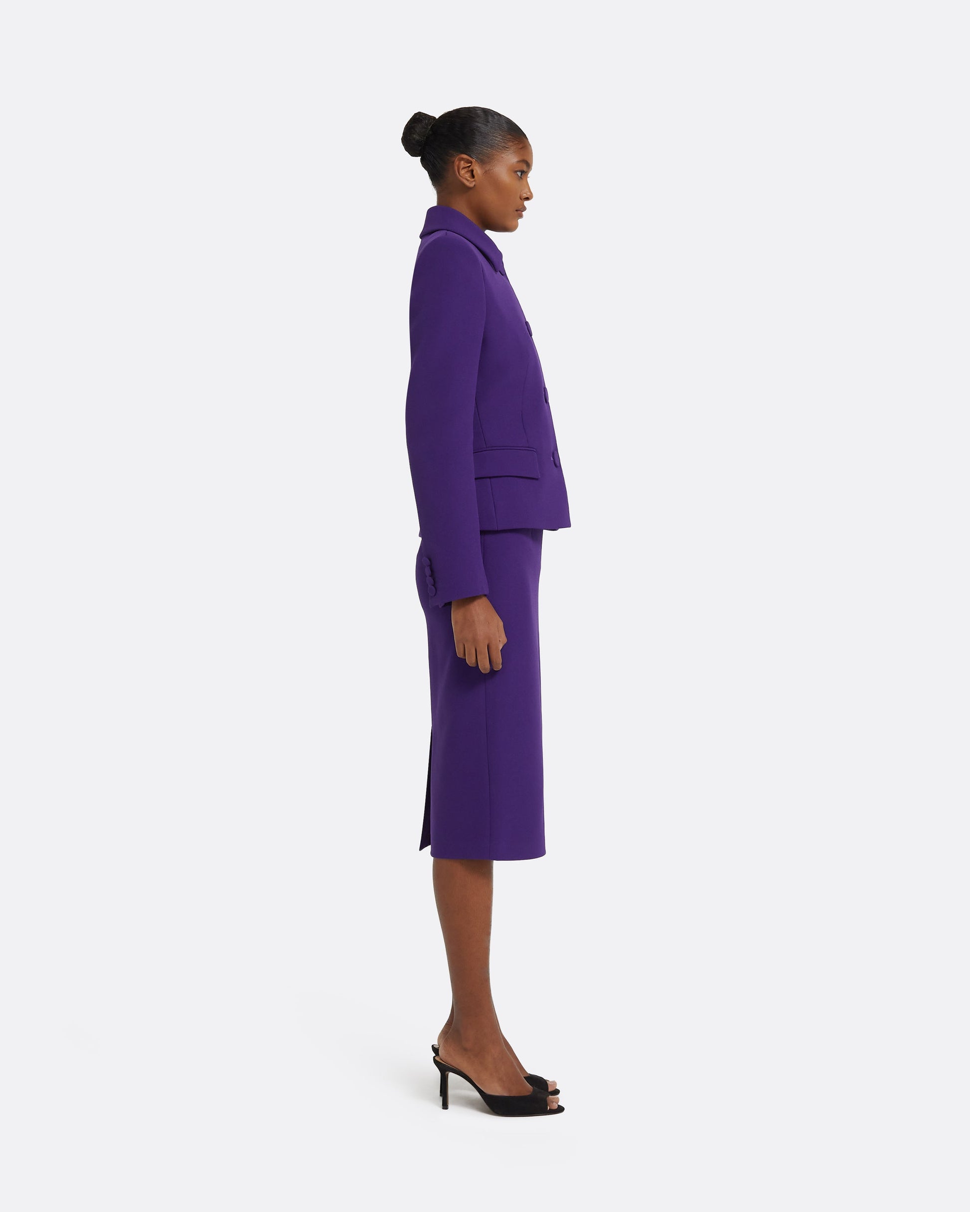From the Resort ’26 collection, the Robyn jacket in pansy defines a confident line. Its tailored cut and precise finish evoke composure, heightened by the depth of its colour.