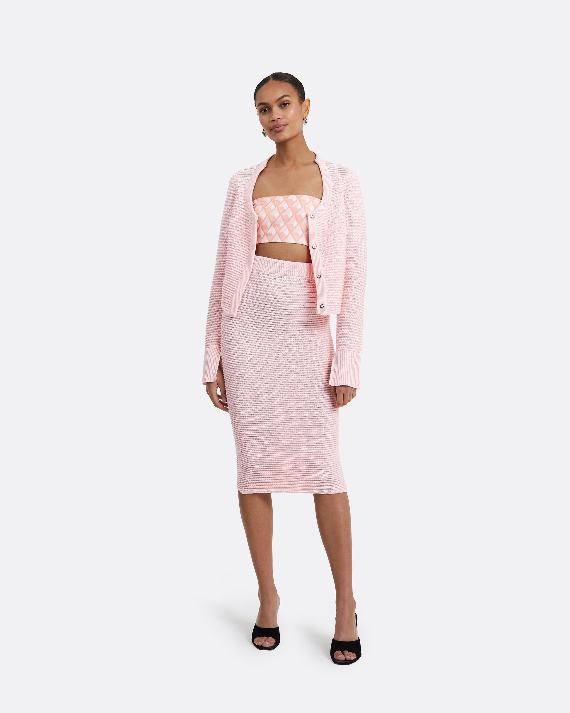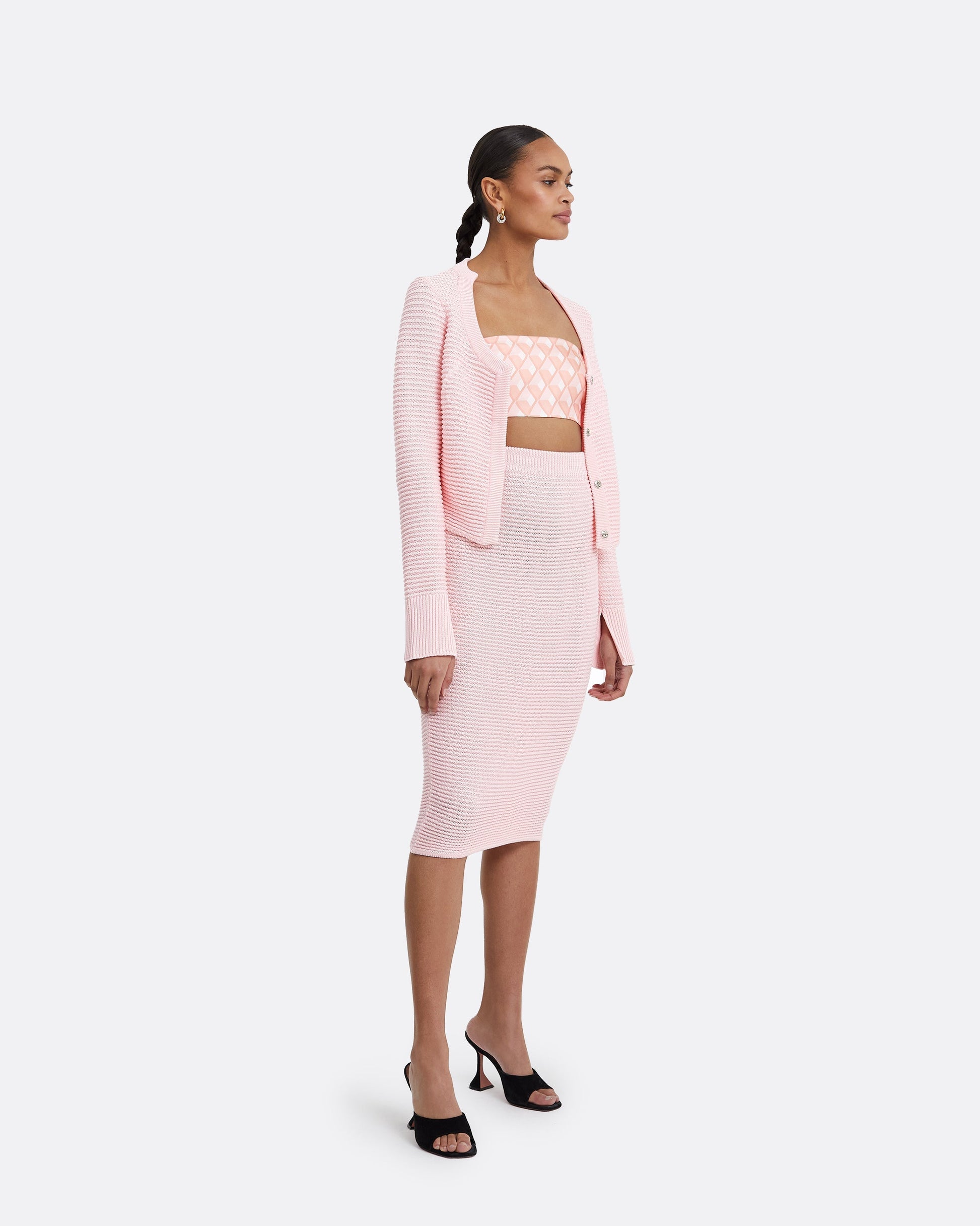 Pencil skirt in rosa crochet.