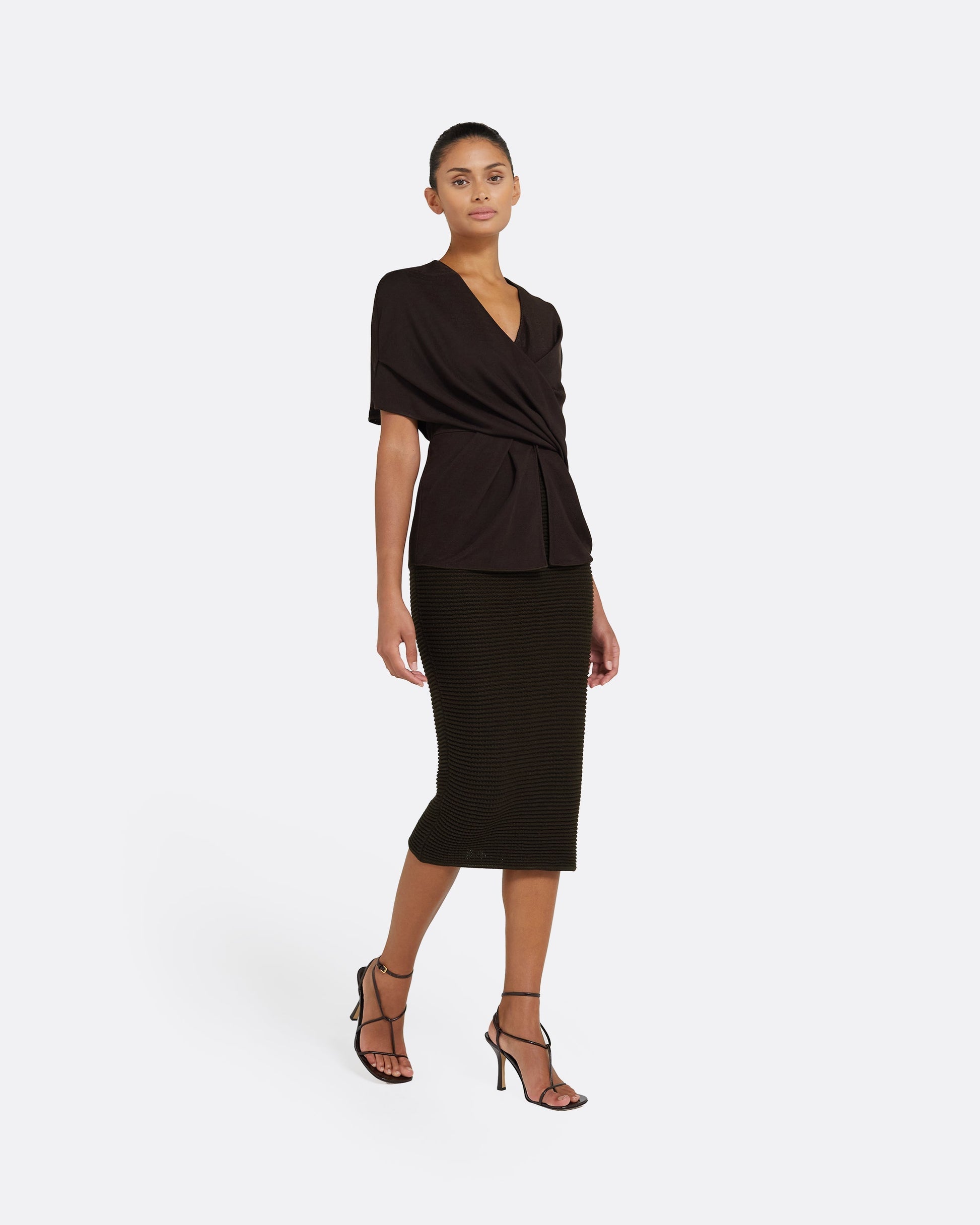 Styled with the Amal crochet top in ivory and Andrey top in dark mocha. Fits true to size. Model is 175cm | 5'9'' and wearing a FR36 Crochet:%100 Cotton