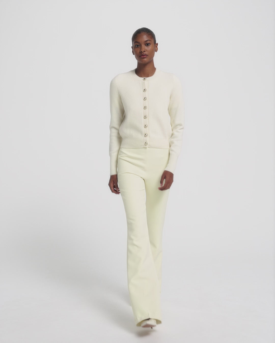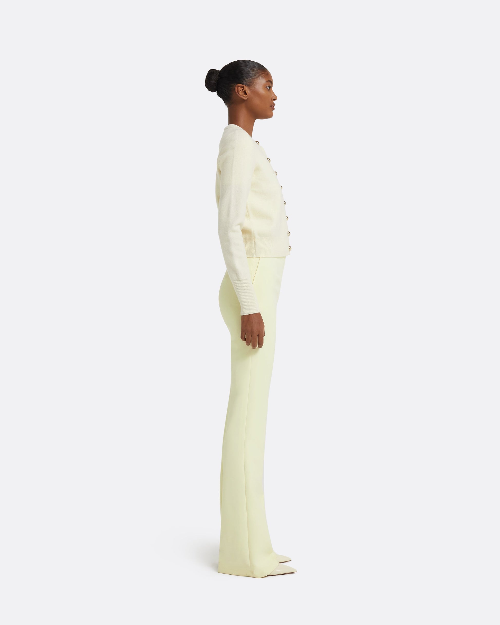 From the Resort '26 collection, the Selen cardigan in ivory brings softness into sharper contexts. Its streamlined cut and subtle fastening details create a balance of comfort and polish.