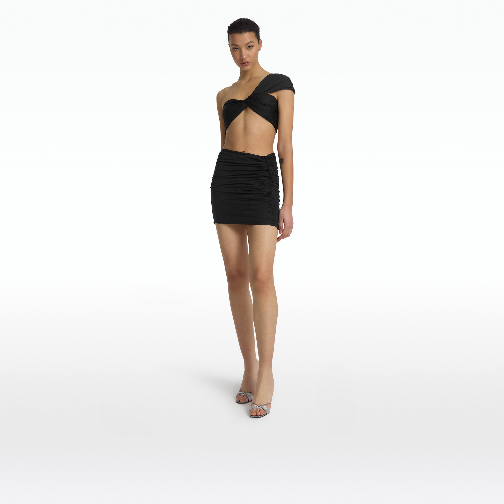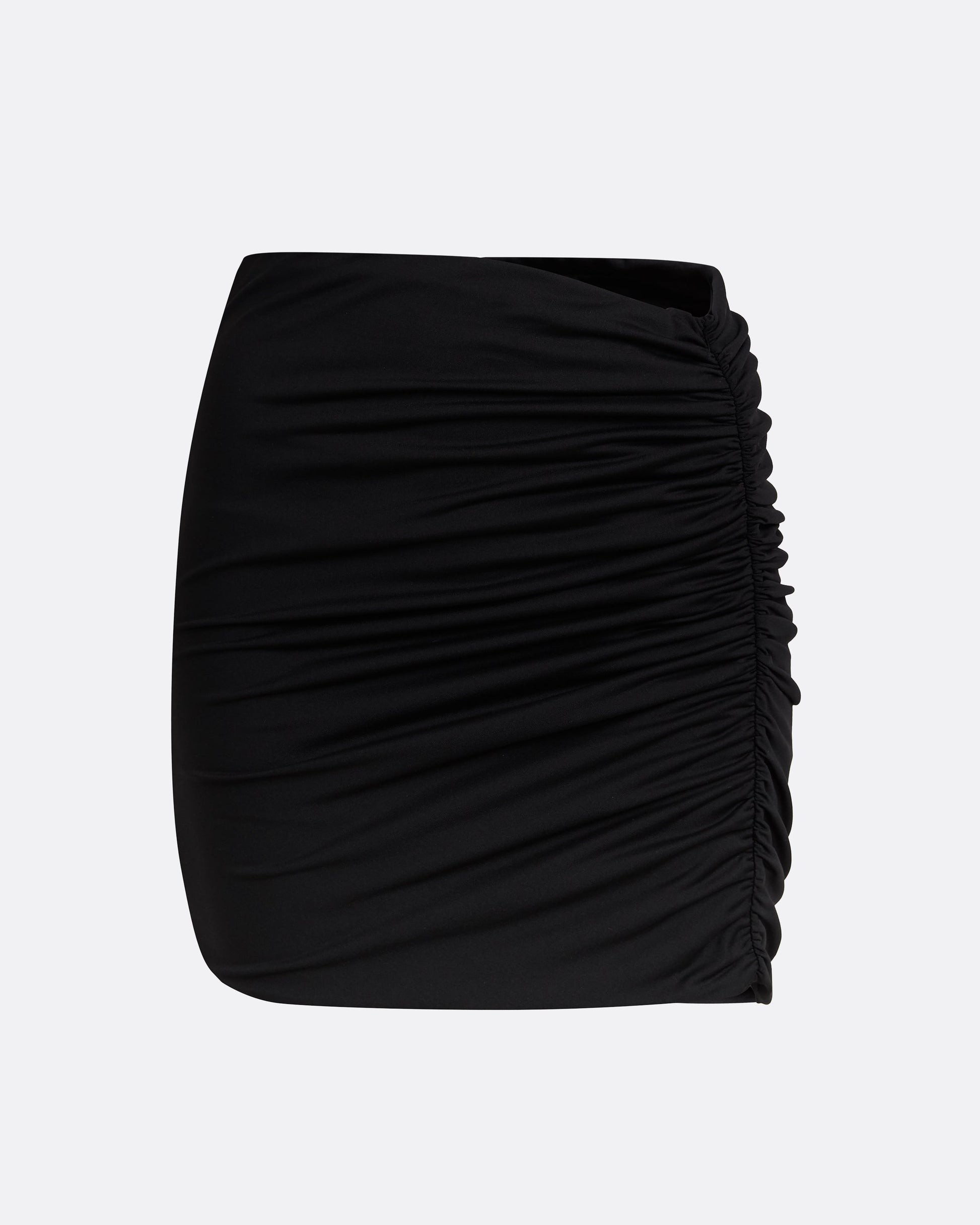 Mini swim skirt with gathering in black Vertigo Jersey.