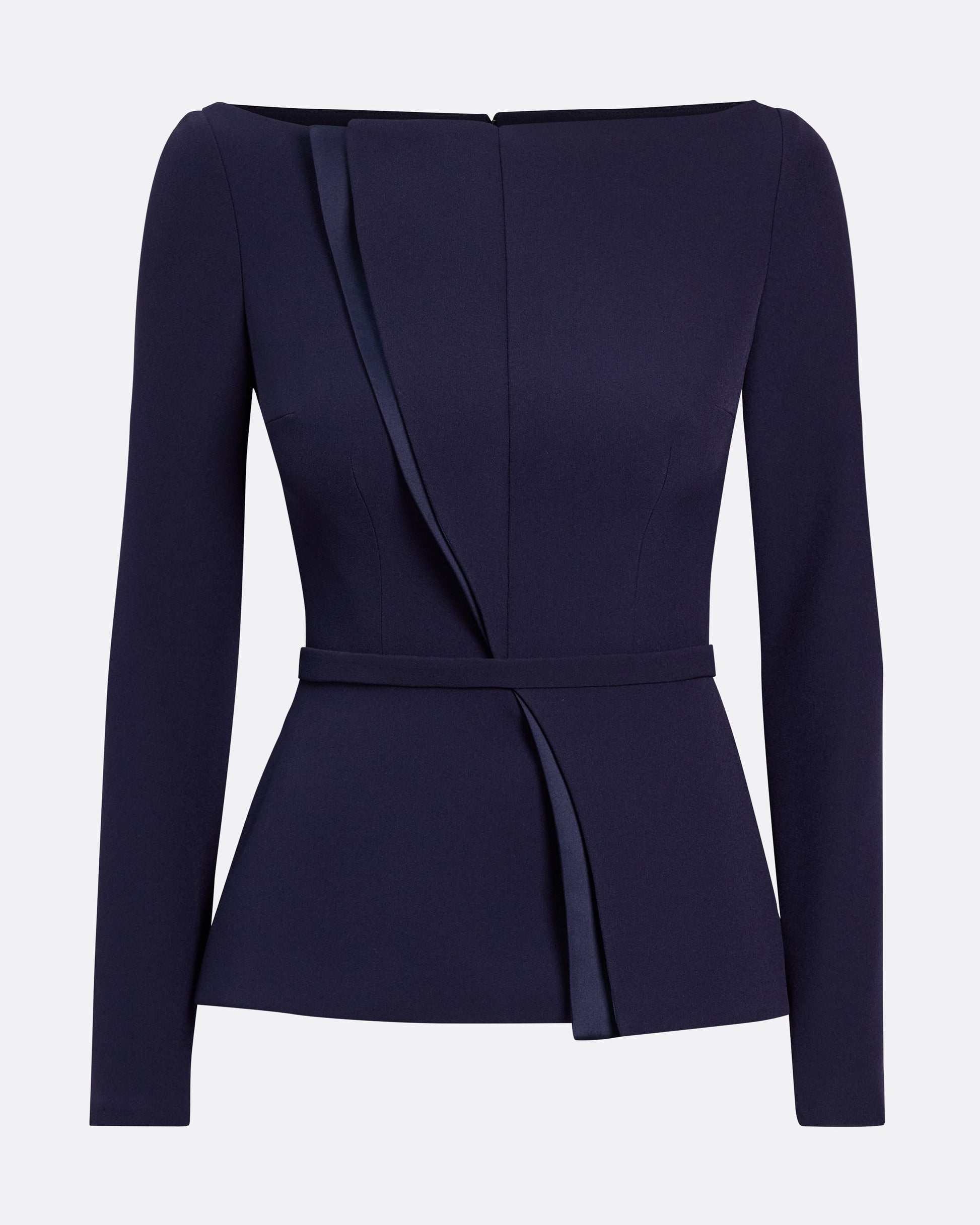 From the Spring Summer ’26 collection, the Tosca Top with Jonia belt in ink blue on azurite presents a clean, elongated line with a softly structured feel.