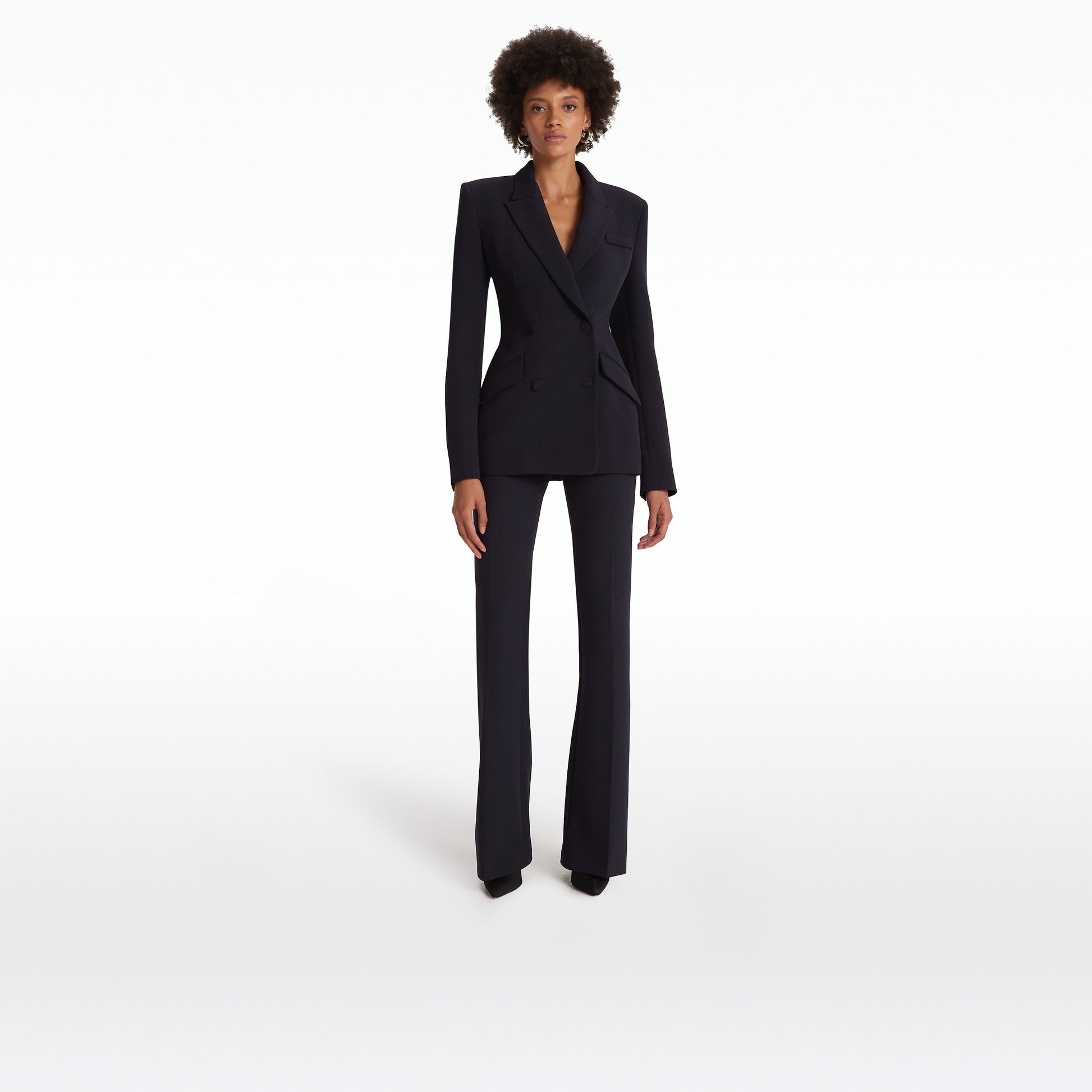 Classic tuxedo style jacket with tailored shoulders in midnight navy Heavy Crepe.